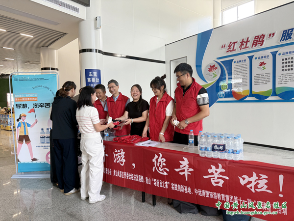 近日,为深入开展黄山风景区“优服务•强品牌”旅游品质提升行动,黄山风景区管委会经济发展局联合黄山市导游员协会等单位举办“关爱导游员•夏日送清凉”活动,通过发放物资、温馨提醒等举措,为高温下坚守岗位的导游员们送去关怀,助力世界级旅游景区建设。