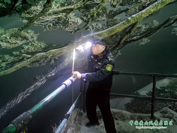 新年首日黄山迎瑞雪 守松人坚守岗位护国宝
