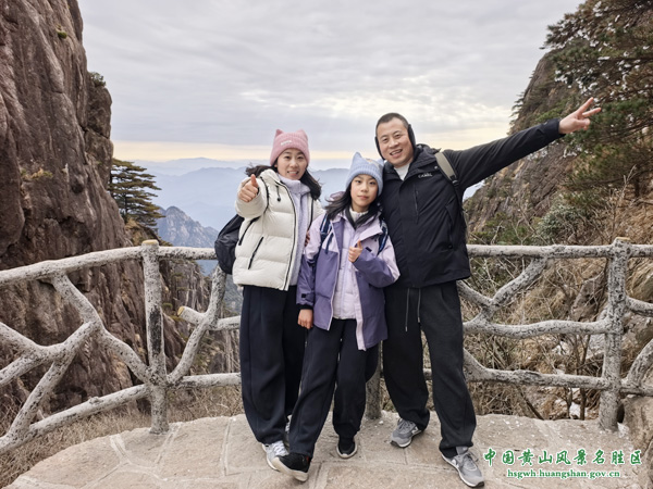 来自宁波的陈怡佳一家趁着春节假期,专程带孩子来攀登黄山,她说:“黄山久负盛名,我们一直心向往之。这山上风景绝美,在难得的节假日带小朋友来,一起感受祖国的大好河山。”
