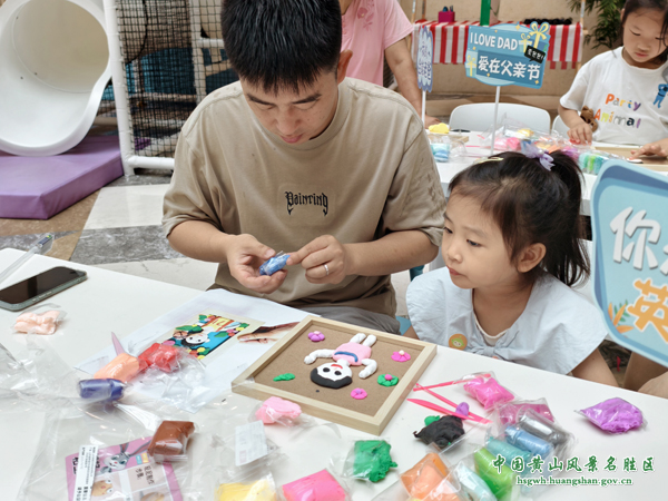 活动现场分为亲子手工区和义诊区两大功能区。在亲子手工区,父亲与孩子们共同参与黏土画创作。孩子们专注地揉捏、塑形,父亲们则在一旁耐心指导,双方默契配合,创作出一幅幅以“心中的父亲”为主题的黏土作品。这些充满童趣的作品不仅是亲子协作的成果,更成为增进父子情感的温馨纽带。