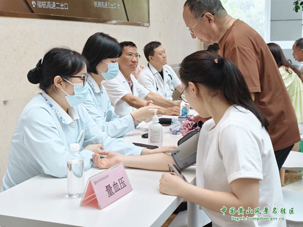 义诊区特邀黄山华泽中西医结合医院的专业医护团队,涵盖内分泌科、神经内科及老年科等科室。医护人员为业主提供测血糖、量血压等基础检查,同时开展健康咨询和疾病预防科普,针对业主的不同健康需求给予专业解答和个性化建议,切实将健康关怀落到实处。