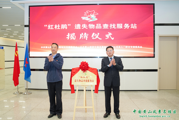 为深入践行“以人为本、以客为尊”服务理念,对标世界一流景区换乘服务目标,强化党建引领赋能服务升级,切实解决游客出行急难愁盼问题,4 月 14 日上午,由黄山风景区迎客松第五党支部、交通股份南大门联合党支部联合打造的 “红杜鹃”遗失物品查找服务站,在南大门换乘中心候车厅正式揭牌启用。黄山旅游集团、景区交通局、景区市场监管局、南大门派出所、南大门综治组等相关单位应邀出席,共同见证景区便民服务新阵地、党建融合新标杆正式落地。