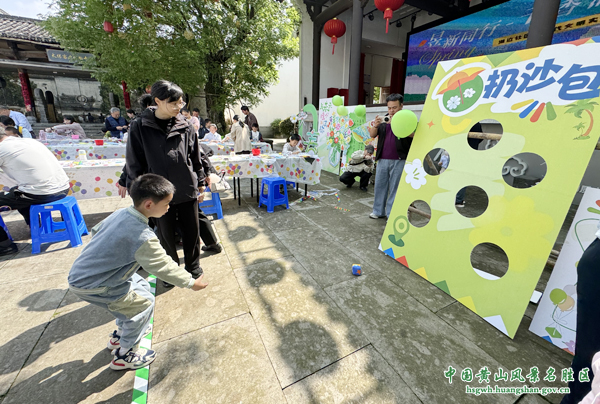 沙包掷趣,欢乐夺宝。小小的沙包,考验着眼力与手气的完美配合。每位小朋友手握三个沙包,瞄准、投掷。沙包落点精准,欢呼声此起彼伏。扔中的孩子兴高采烈地跑到兑奖处,在“泡泡棒”和“小零钱包”中任选一件作为奖品。不一会儿,场地上便满是吹着泡泡奔跑的身影和挂着小包的笑脸。