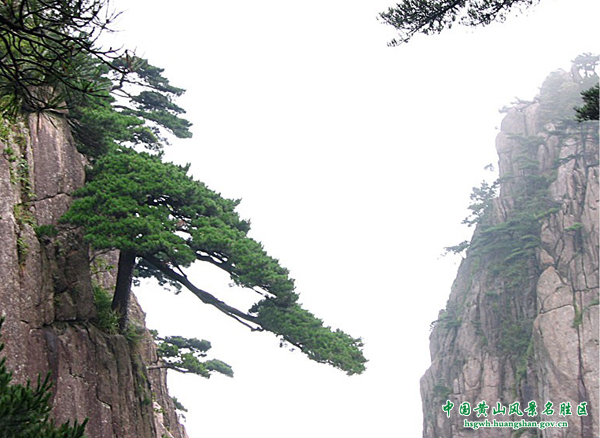 生于始信峰危崖上,面对石笋峰。有一侧枝很长,伸入云海,犹如苍龙探取海中之物,树高3.6米,胸围1.06米,冠幅6.0米×6.6米。