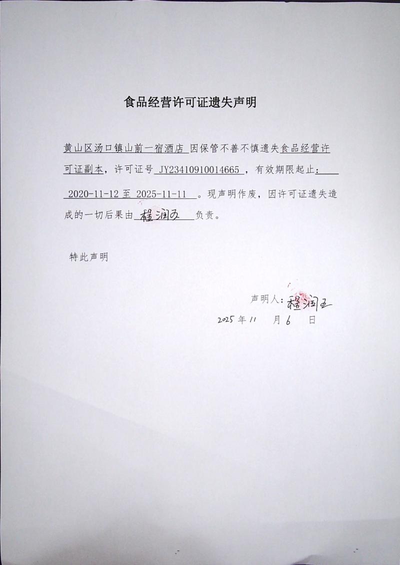食品经营许可证遗失声明