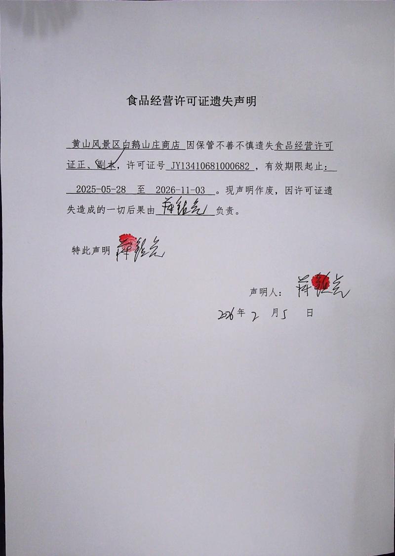 食品经营许可证遗失声明