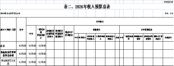 黄山风景区公安局2026年收入预算6379.93万元,其中:本年收入6379.93万元,上年结转收入0万元。