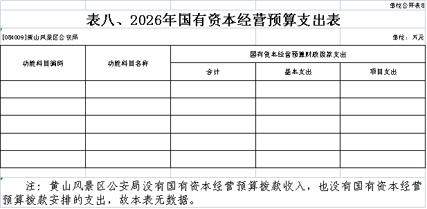 8.黄山风景区公安局2026年国有资本经营预算支出表