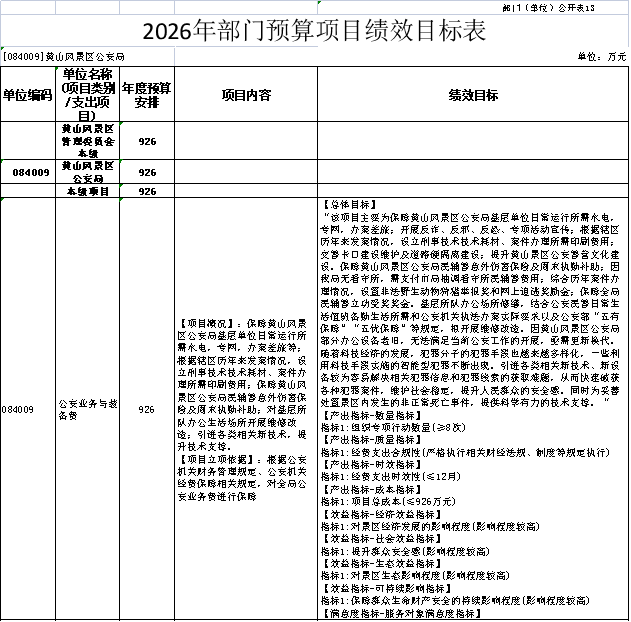 13.黄山风景区公安局2026年项目支出绩效目标及项目情况表