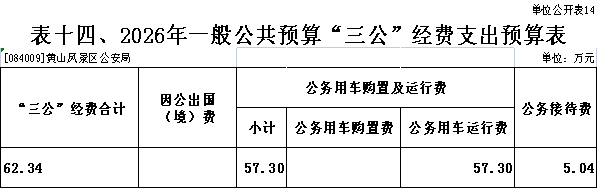 14.黄山风景区公安局2026年“三公”经费财政拨款支出预算表